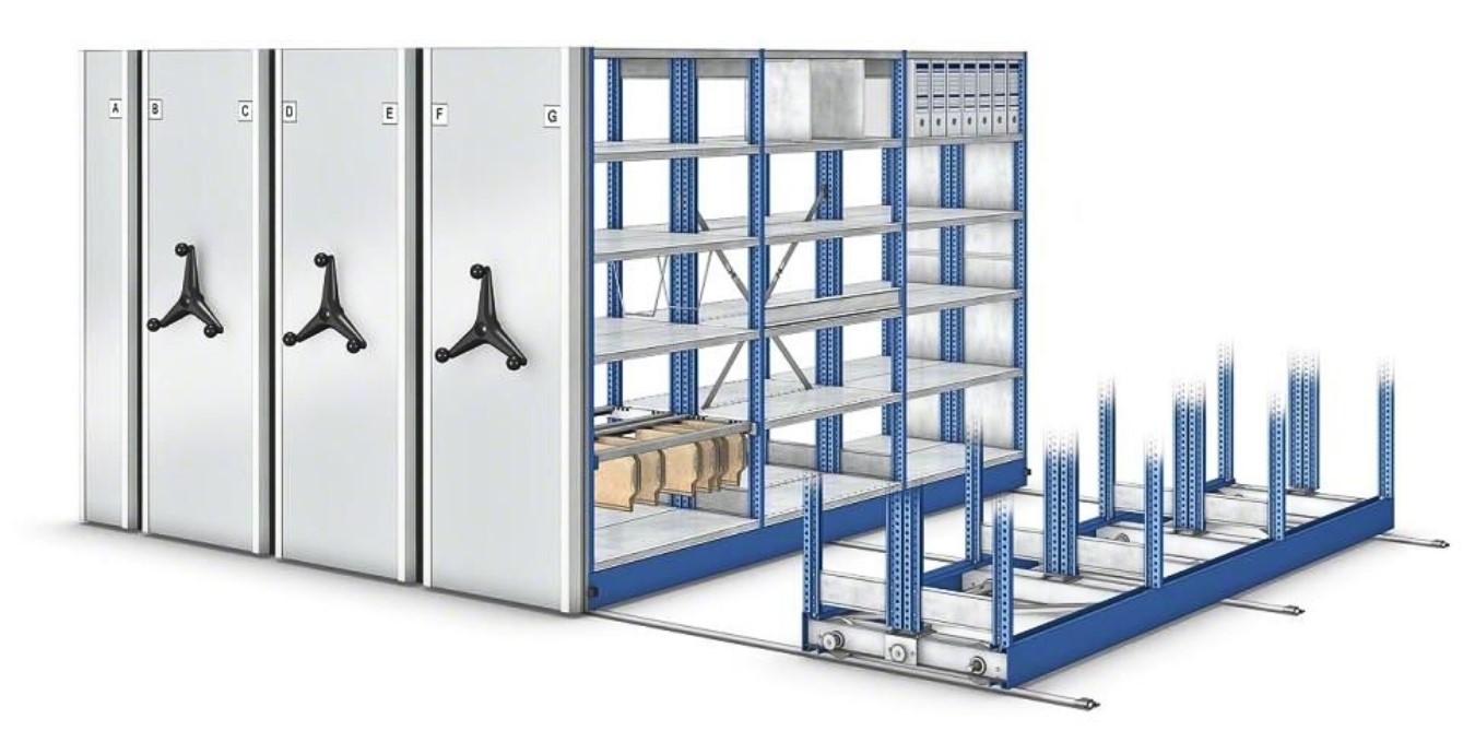 Kệ tay quay (Mobile Shelving) là hệ thống kệ kho di động thông minh, giúp lưu trữ, bảo mật và tối ưu không gian kho nhờ khả năng di chuyển dọc theo ray bằng tay quay hoặc tự động. Kệ được ứng dụng phổ biến tại thư viện, bảo tàng, hồ sơ, tài liệu tại văn phòng, kho lạnh bảo quản vắc-xin.