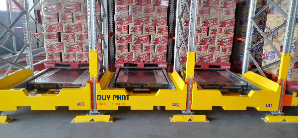 Kệ chứa hàng tự động radio shuttle là hệ thống kho lưu trữ pallet, giúp tối ưu diện tích nhà kho, tăng năng suất vận chuyển. Hệ thống kệ hàng này sử dụng thiêt bị radio shuttle để di dời, bốc dỡ pallet ra khỏi kệ hàng. Radio shuttle được điều khiển thông qua remote hoặc phần mềm điều khiển từ xa.