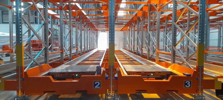 Sử dụng kệ chứa hàng tự động Radio shuttle giúp giảm thiểu nhân công và chi phí
