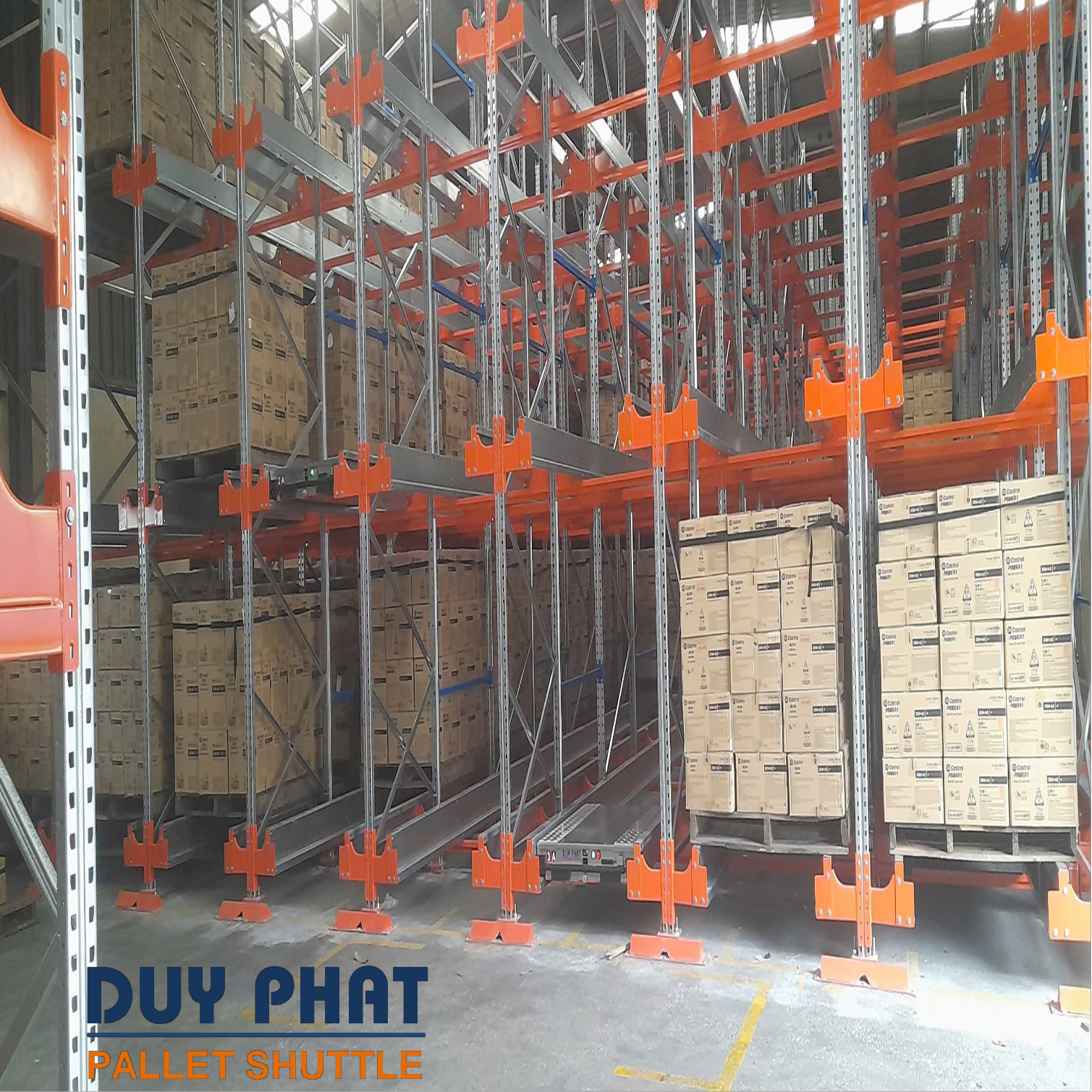 Kệ Robot Shuttle là dạng kệ chứa được thiết kế đặc biệt, tối ưu sức chứa của kho hàng bằng cách tận dụng không gian các lối đi. Hệ thống kệ shuttle bao gồm những dãy kệ được lắp liên tiếp nhau, lối đi giữa các làn kệ được tối giản. Pallet hàng hóa sẽ được di dời bằng các robot di chuyển trên đường ray, giúp giảm thiểu đáng kể thời gian lưu kho.
