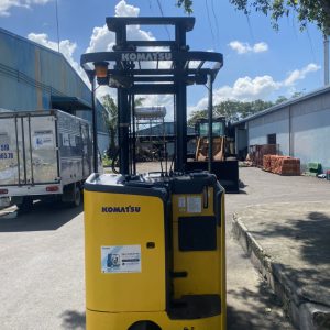 Xe nâng điện Komatsu FB18RLF-14 là dòng xe nâng chạy bằng bình ắc quy, xe được sử dụng trong những nhà kho có lối đi hẹp, diện tích không đủ để quay đầu xe. Loại xe nâng này được dùng để nâng hạ các loại hàng hóa lên các kệ hàng cao. Điểm mạnh của nó là chỉ cần đứng một chỗ sử dụng càng nâng là có thể dễ dàng sắp xếp hàng hóa mà không cần phải di chuyển xe.