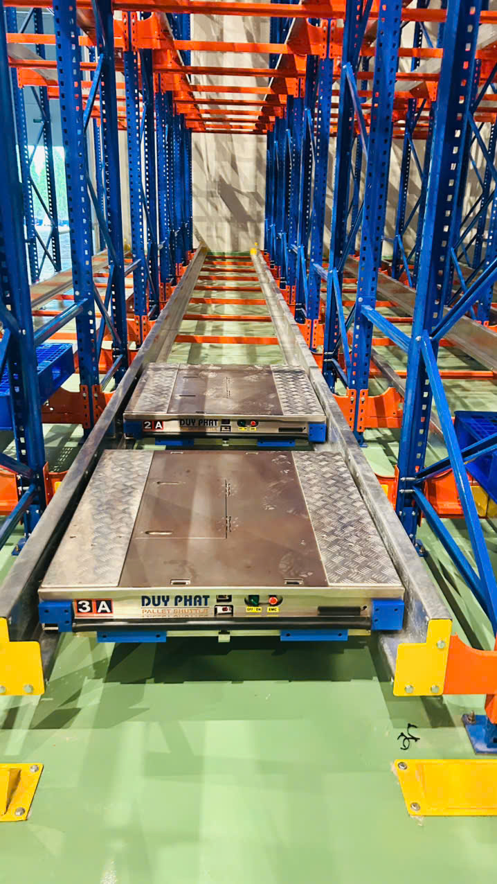 • Hệ thống Pallet Shuttle cho phép bạn tối đa hóa không gian sàn và chiều cao có sẵn bằng cách giảm thiểu lối đi vận hành cần thiết cho xe tải.